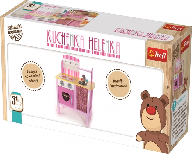 A Helenka TREFL gyerek konyha stílusos, fából készült játék, amely elrepíti a gyerekeket a főzés világába. A valósághű elemeknek – tűzhely sütővel, mosogató és praktikus tároló – köszönhetően a gyerekek finommotorikájukat és szociális készségeiket is fejleszthetik a szerepjáték során.