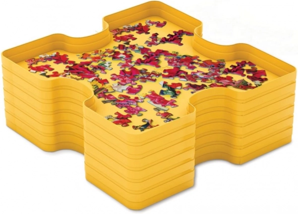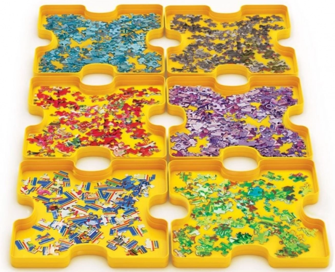 Praktikus EUROGRAPHICS kirakórendező a kényelmes és áttekinthető kirakáshoz. 6 darab, kirakódarab alakú műanyag tálkát tartalmaz, 20 × 20 cm méretben, amelyek lehetővé teszik a darabok szín és forma szerinti válogatását. A tálkák egymásra rakhatók, és könnyen visszahelyezhetők a dobozba, így helyet takarítanak meg, és megakadályozzák a darabok elvesztését. Kapacitás akár 1000 darab.