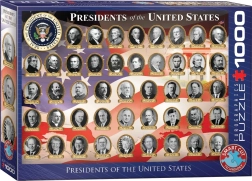 Remek kihívás a puzzle-rajongóknak! Ez a lenyűgöző puzzle az Amerikai Egyesült Államok elnökeinek motívumával 1000 darabot tartalmaz szokatlan formákkal, ami növeli az összerakás nehézségét.