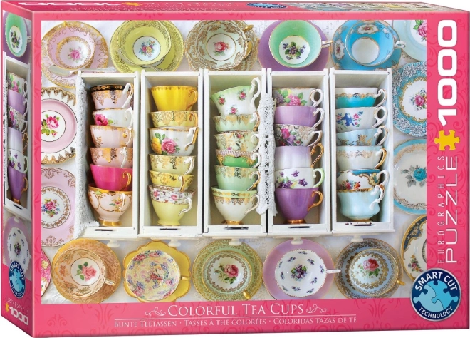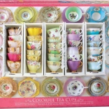 Élvezze a hosszú órákig tartó szórakozást az EUROGRAPHICS márka színes teáscsészéket ábrázoló gyönyörű motívumával. Ez a minőségi, 1000 darabos puzzle készlet egyedi, rács nélküli kivágással készül, amelynek köszönhetően a darabok szokatlan alakúak, az összerakás pedig kellemesen kihívást jelentő. Összerakva kb. 68 × 48 cm méretű kép készül – ideális keretezéshez és az enteriőr díszítéséhez.
