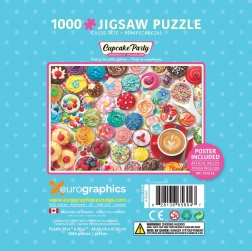 Stílusos puzzle Cupcake-ünnepség motívummal, amely örömet okoz minden édességmotívum- és minőségi kivitelezéskedvelőnek. A dombornyomott tetejű fémdoboz prémium hatású, és a kirakó befejezése után is hasznos – konyhai tárolódobozként vagy design kiegészítőként.