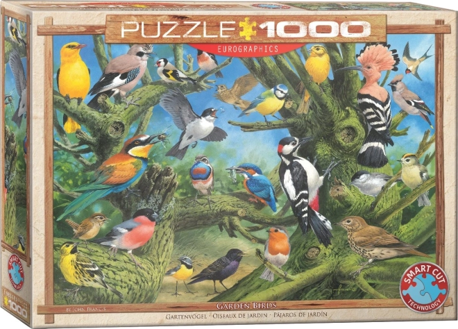 Fedezze fel a szórakozást és a kihívást az EUROGRAPHICS puzzle Madarak a kertben – 1000 darab szokatlan formákkal a szabványos rácsmintát nem követő kivágásnak köszönhetően. Összerakva a kép mérete megközelítőleg 67,63 × 48,89 cm.