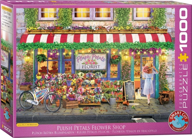Fedezze fel a virágok varázslatos világát a Eurographics Virágbolt Plush Petals kirakóval. Ez az 1000 darabos puzzle a színek és gyönyörű virágkompozíciók világába vezeti, amelyek a kirakó minden részét díszítik.