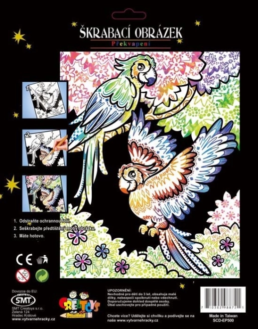 Fedezze fel a kreativitást a Két papagáj kaparós képpel az ARTLOVER márkától. Remek szórakozás gyerekeknek és felnőtteknek, szivárványos hatással a gyönyörű végeredményért.
