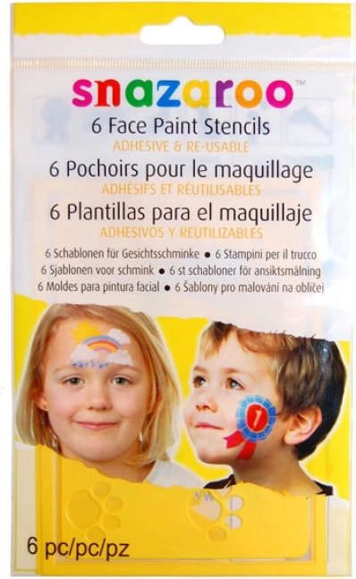 A hatdarabos SNAZAROO sablonszett megkönnyíti a gyors és pontos arcfestést és testfestést. Az öntapadó hátoldalnak köszönhetően a helyén marad, a rugalmas anyag alkalmazkodik a görbületekhez, a sablonok pedig többször használhatók és moshatók.
