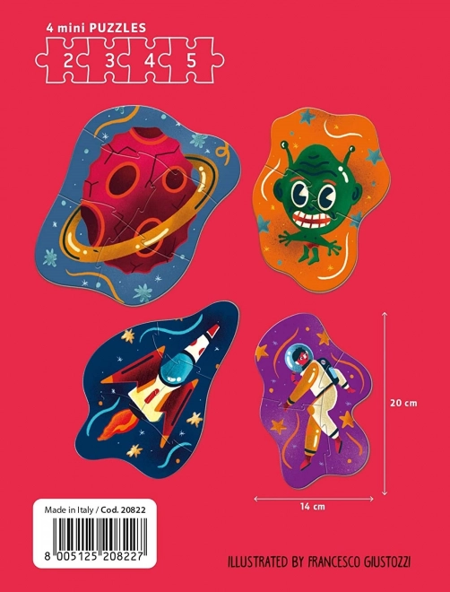 Minden kirakó egyedi dizájnnal büszkélkedhet, beleértve űrrepülőt, földönkívülit, bolygót és űrhajóst, ezzel támogatva a gyermekek fantáziáját és az űr megismerését.