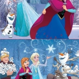 Gyermek puzzle a népszerű Jégvarázs meséből. Két kép egy dobozban – mindegyik 48 darabbal. Összeállított puzzle mérete kb. 28 × 20 cm