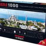 A panorámapuzzle az Ahmed szultán mecset (Kék mecset) gyönyörű motívumával Isztambul hangulatába repít. Széles formátumának köszönhetően a falon remekül mutat, és örömet szerez az építészet kedvelőinek és a szenvedélyes kirakórajongóknak egyaránt.