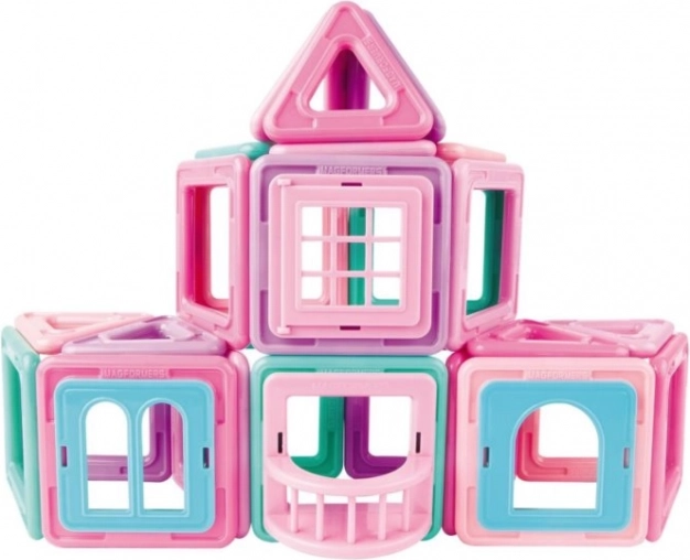 A Magformers Mini House egy szépen megtervezett és fantasztikusan összeállított készlet, amely 42 darabot tartalmaz. Kiváló építőkészlet minden kis építésznőnek, speciális bepattintható kiegészítőkkel az épületekhez – például erkéllyel, ablakokkal és mindennel, ami egy álomház felépítéséhez szükséges pasztell rózsaszín és türkiz színekben. Építhetsz bármit a házikóktól és nyaralóktól kezdve egészen komplett összeállításokig fákkal együtt. A készlet tartalma: 18 négyzet, 12 háromszög, 1 egyszárnyú ablak, 1 kétszárnyú ablak, 1 osztott ablak, 1 erkély, 6 tégla mintázatú betét és 2 fa. 3 éves kortól ajánlott. Darabszám: 42. A kreatív mágneses építőkészlet, a Magformers lehetővé teszi számos háromdimenziós objektum megépítését kétdimenziós műanyag sokszögek segítségével. A Magformers fejleszti a finommotorikát, ösztönzi a kreativitást, megtanítja a gyerekeknek a színeket és az alapvető geometriai formákat. Az elemek mérete és megfelelően megválasztott formái maximális játékbiztonságot garantálnak. Az építőkészlet anyaga megfelel a legszigorúbb higiéniai és egészségügyi követelményeknek. Az elemek elég nagyok, nem nyelhetők le, és gyakorlatilag törhetetlenek. A MAGFORMERS nagyon jól kombinálható a népszerű Geomag mágneses építőkészlettel is.