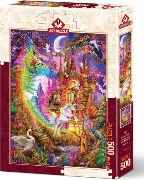 Fedezze fel a szivárványvár varázslatos motívumát, és lazítson kirakózás közben, amely fejleszti a figyelmet, a koncentrációt és a türelmet. Az 500 darabos puzzle ideális egy nyugodt estére vagy hétvégi családi szórakozásra.