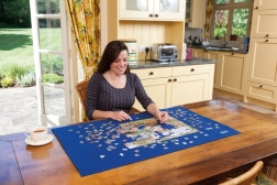 Vége a lefoglalt asztaloknak – a PIATNIK gurítható kirakóalátéttel a szétszórt darabok mindig biztonságban lesznek, és készen állnak a folytatásra. Az alátét ideális 1000 darabos kirakókhoz (ajánlott max. puzzle-méret 90 × 50 cm), a masszív pántoknak és a karton tubusnak köszönhetően pedig a kezelés gyors és kényelmes.
