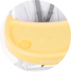 A Chipolino Teddy etetőszék remek segítség a mindennapi etetéshez. A széles ülőrész és a puha huzat maximális kényelmet nyújt, míg az 5 pontos öv és a stabil váz minden étkezésnél biztonságot garantál. A praktikus tálca könnyen tisztítható, és bőséges helyet kínál az edényeknek és a kedvenc nassolnivalóknak.