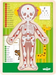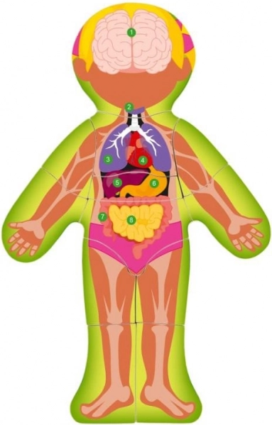 Fa oktatási puzzle emberi test motívummal, ideális eszköz 3 éves kortól azon gyerekek számára, akik az anatómia és az emberi szervek működését szeretnék megismerni.