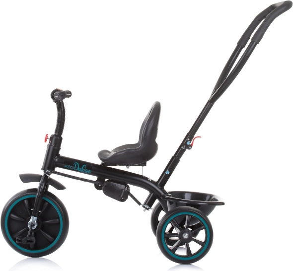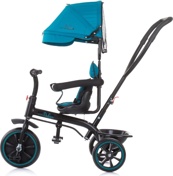 Növekvő gyerek tricikli 2 az 1-ben szülői tolókarral, levehető napellenzővel és kényelmes, széles üléssel. Könnyen átalakítható asszisztált módból önálló tekerésre alkalmas triciklivé. Nem hiányzik a biztonsági karfa, a felhajtható lábtartó és a praktikus hátsó kosár az apróságoknak.
