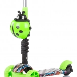 A színes LED-es első kerekek növelik a láthatóságot és a mókát, a háromkerekű stabilitás és a hátsó taposófék pedig a biztonságos megállásról gondoskodik.