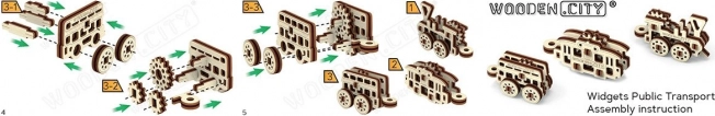 A WOODEN CITY márkájú Drobnostek - Widgets 3D puzzle készletek egyedi élményt nyújtanak az összeszerelésben. Három mini közlekedési eszköz modellel rendelkeznek, amelyeket kiállíthat, viselhet vagy ajándékba adhat.