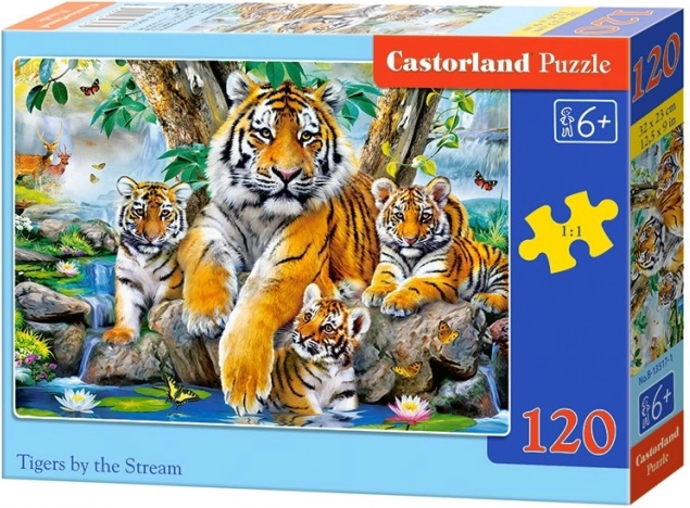 Készítsen lenyűgöző képet Tigrisek a pataknál ezzel a 120 darabos puzzle-val. Ideális azoknak a 6 éves kortól gyerekeknek, akik bonyolultabb kihívásokat keresnek.