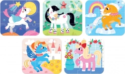 Oktatójáték puzzle ló mintákkal, melyek a gyerekeket a fantázia és szórakozás világába hívják! Segítenek fejleszteni a finommotorikus képességeket, megfigyelőképességet és képzelőerőt.