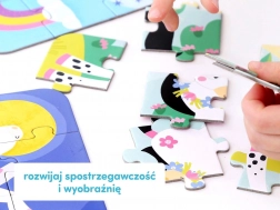 Hogyan játszunk: Válasszuk szét a különféle kirakókhoz tartozó darabokat, és rakjuk össze a puzzle-t! Nevezzük meg a színek és tárgyakat az illusztrációkon. Mit csinálnak a lovak? Talán saját történetet is kitalálhatsz a kalandjaikról?