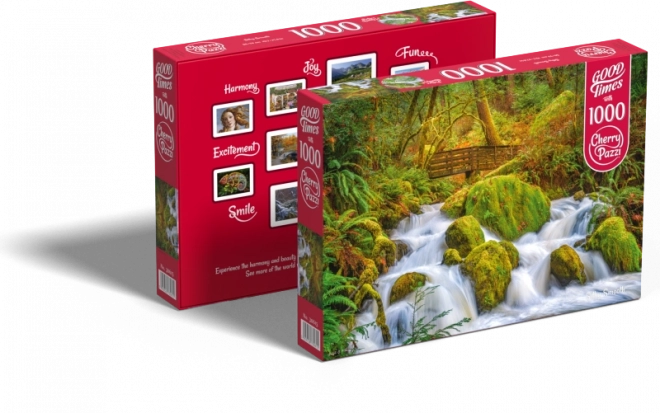 Puzzle Erdő vízesés 1000 darabbal tökéletes választás a kikapcsolódáshoz és mentális gyakorláshoz. Állítsd össze a gyönyörű természeti jelenetet és élvezd a minőségi időt a családdal.