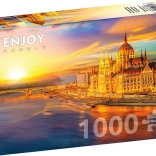 Rakja össze az impozáns kilátást a Magyar Parlamentről naplemente fényében ezen a gyönyörű, 1000 darabos kirakón.
