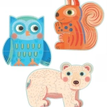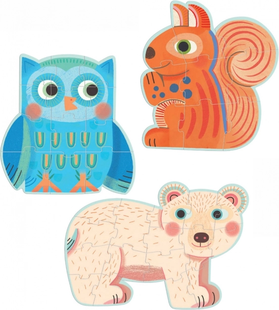 A DJECO Az erdőben 3 az 1-ben szett három aranyos, erdei állat alakú kirakót tartalmaz. A különböző nehézségi szinteknek köszönhetően a gyerekek játékosan fejleszthetik a koncentrációt és a megfigyelőképességet. A színes illusztrációk játékra hívnak és támogatják a fantázia fejlődését.