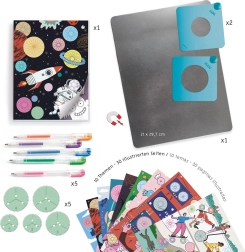 Minden szükséges megtalálható a csomagban – a fém alaplaptól a három nyílással ellátott fogaskerekeken át egészen a színes géltollakig. Válasszon egy sablont, rögzítse mágneses kerettel, és kezdődhet az egyedi dekoratív kompozíciók alkotása.