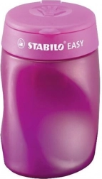 Ergonomikus STABILO hegyező balkezeseknek, praktikus tartállyal a tiszta hegyezéshez. Kínál kényelmes fogást, három élezési átmérőt, és ideális iskolába, irodába és otthonra.