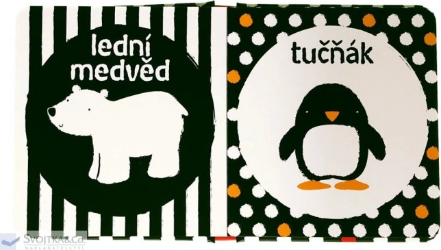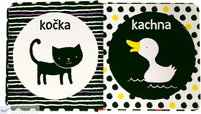 Ez az első fekete-fehér, állatos könyvecske úgy készült, hogy serkentse az újszülöttek és csecsemők vizuális észlelését. A nagy kontrasztú fekete-fehér képek finom színes akcentusokkal a korai látásfejlődéshez alkalmasabbak, mint a tarkabarka illusztrációk. A baba biztonságosan megfoghatja a könyvet, és újra meg újra nézegetheti.