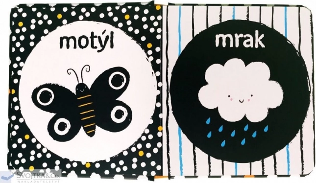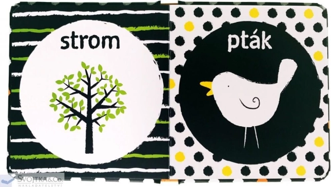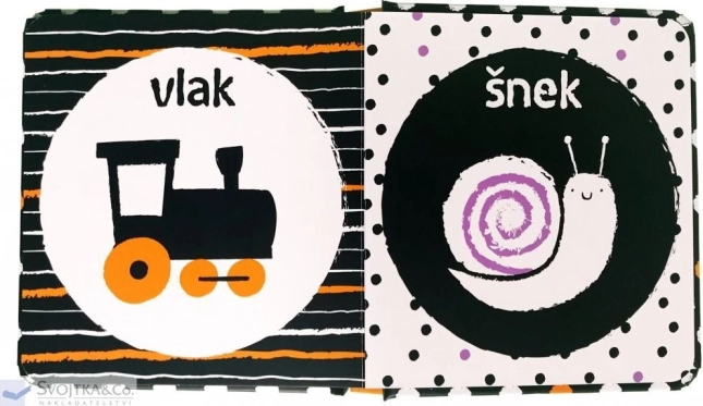 Ez a bájos könyv fekete-fehér illusztrációkkal és finom színes elemekkel segít a babáknak jobban fókuszálni, felismerni az alakzatokat és a részleteket. Olyan tárgyakat és állatokat mutat be, amelyekkel séták során találkozhattok, és ösztönzi a környező világ első felfedezését.