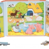 Fedezze fel a csodálatosan illusztrált mágneses kirakós könyvet tanyasi élet jelenetekkel, amely 4 képet nyújt. Két kép kirakóként van kialakítva, mindegyik 20 mágneses darabbal, amelyek jól tapadnak. Ez a könyv erős kartonból készült, így tartós és praktikus utazáshoz. Segít fejleszteni a gyerekek finom motorikus készségeit és logikai gondolkodását.