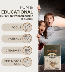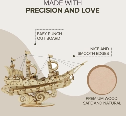 A ROBOTIME Rolife sorozat izgalmas kihívást kínál minden puzzle és fa modellek kedvelőinek. Állítson össze saját 3D vitorlást, mely nemcsak szórakoztató tevékenységként, hanem befejezéskor szép dekorációként is szolgál. Koordinálja kezét és elméjét, fejlessze technikai gondolkodását és finommotoros képességeit.