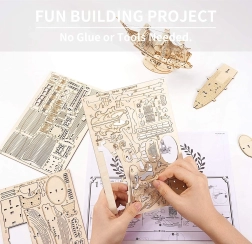 Fedezze fel a ROBOTIME Rolife készlet varázsát, ahol a saját kezével állíthatja össze a lenyűgöző 3D fa vitorlást 118 darabból!