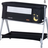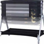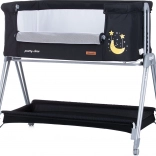A lehajtható oldalfal megkönnyíti az éjszakai szoptatást és a baba közelségét, míg a légáteresztő hálós oldalak folyamatos rálátást és optimális szellőzést biztosítanak. A tartozék a puha, kézzel mosható matrac, valamint biztonsági hevederek a szülői ágyhoz való stabil rögzítéshez.