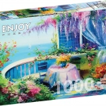 Ez a gyönyörű puzzle bevezet a természet és nyugalom világába. Élvezd a szépen illusztrált virágos balkont, amely lenyűgöz részletes kidolgozásával és színes palettájával. Ennek a kirakónak az összerakása nagyszerű módja a kikapcsolódásnak és az elméd edzésének.