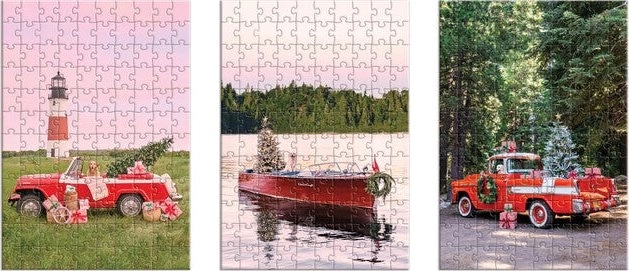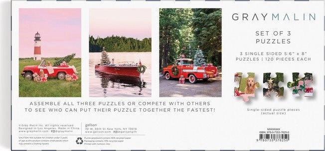 A Gray Malin The Holiday 3-In-1 Puzzle Set három 120 darabos kirakóst tartalmaz, melyeket Gray Malin légi fotóinak sikerei inspiráltak. Ideális mindenki számára, aki szeretne belemerülni a művészeti fotózás és a relaxáció világába.
