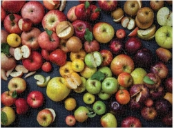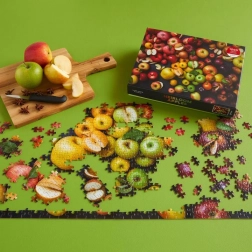 A puzzle képe sokféle almafajtát ábrázol, ami esztétikai élményt nyújt az összerakás során.