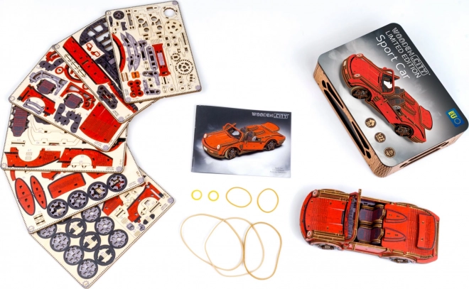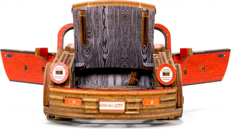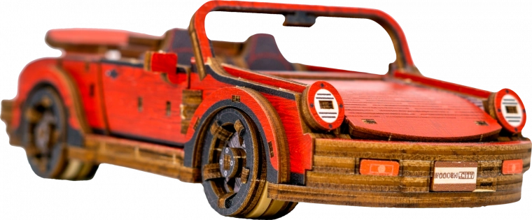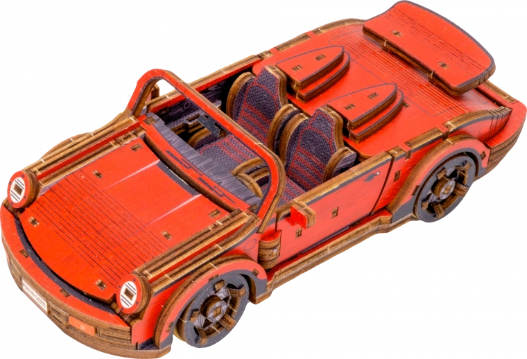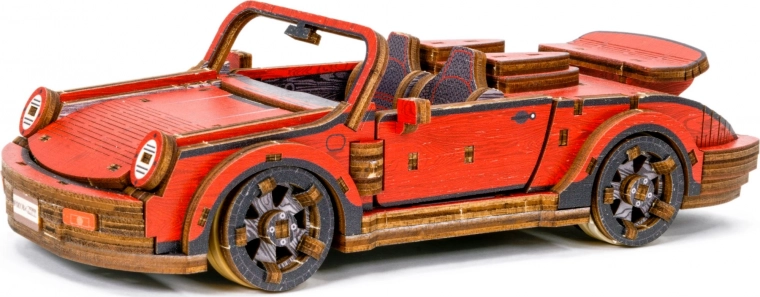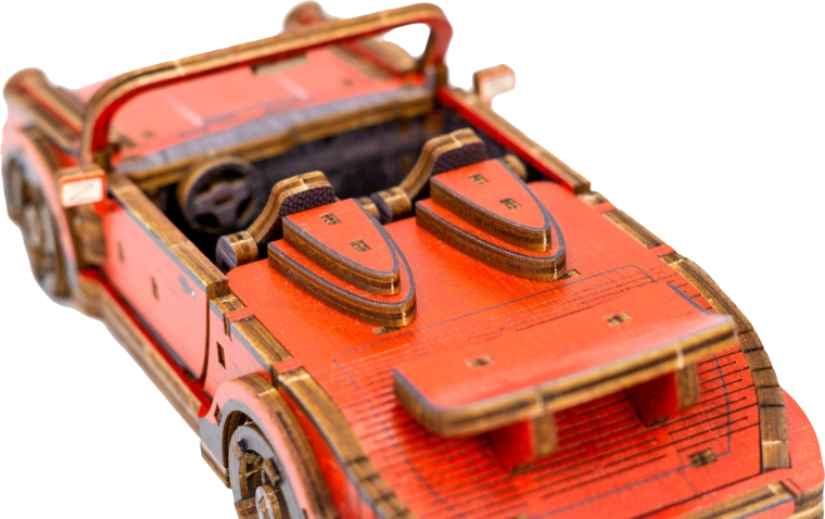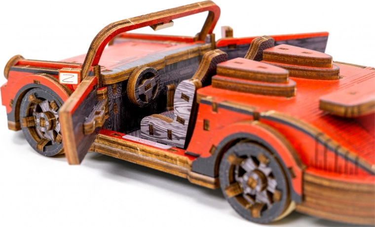 Ez a mechanikus fa építőkészlet 1:22 méretarányú sportautó-modellként autentikus makettezési élményt nyújt. A precíz UV-nyomtatásnak köszönhetően kiemelkednek a kontrasztos színek, a működő elemek és az átgondolt részletek. Az autó elsőkerék-kormánnyal és tehetetlenségi mechanizmussal rendelkezik, amellyel akár 1 métert is megtesz. A csomag része egy elegáns fa doboz is, amely praktikus talpként használható kiállításhoz.