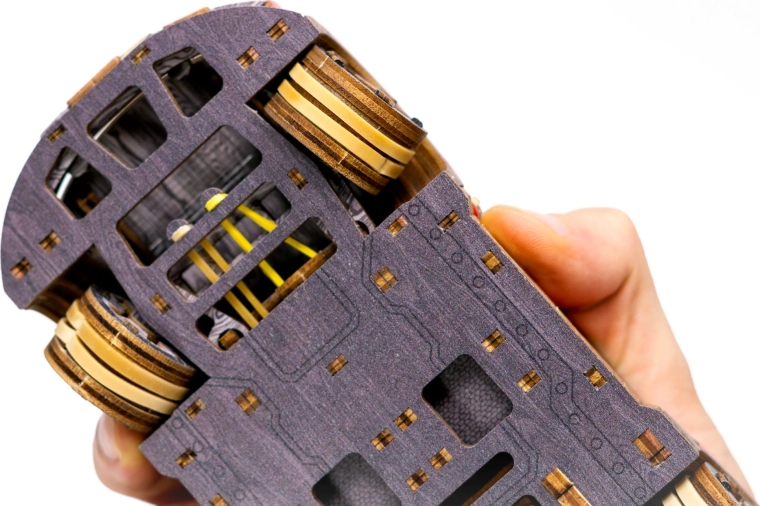 A minőségi nyírfa rétegelt lemezből készült elemek pontosan illeszkednek egymáshoz. Az összeállítás intuitív, szórakoztató, és kiváló ajándék műszaki rajongóknak is.