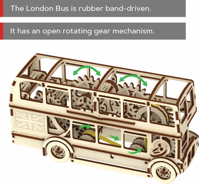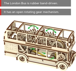 A londoni busz modell nemcsak a londoni közlekedés szimbóluma, hanem tökéletes ajándék bármilyen alkalomra. Kézzel szerelt forgó mechanizmust tartalmaz, és gumimeghajtással működik, amely a valós mozgást szimulálja. Merüljön el egy új hobbiban, és fedezze fel a klasszikus eleganciát műanyag csomagolás nélkül.