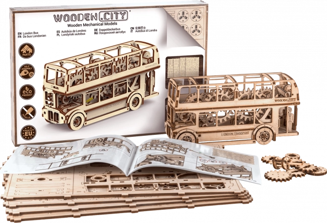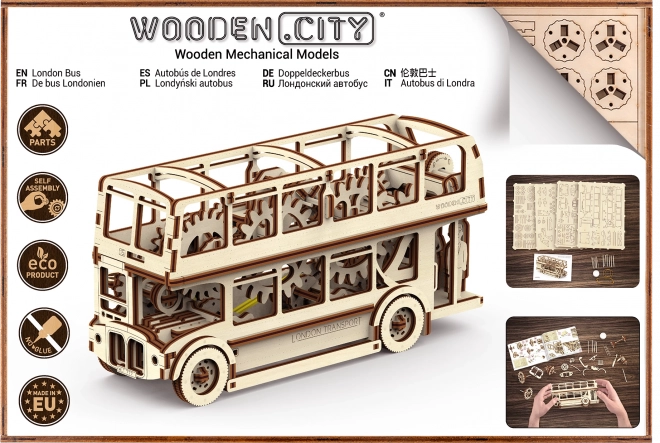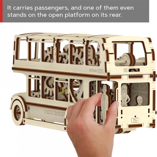 A fa 3D londoni busz kirakó csodás választás kikapcsolódáshoz és tanuláshoz egyaránt. Készítsen lenyűgöző modellt ragasztás vagy csavarozás nélkül.
