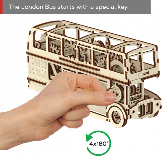 A londoni busz modellje klasszikus megjelenésével tűnik ki, amely tökéletesen utánozza a londoni utcák valódi buszait.