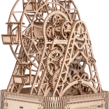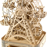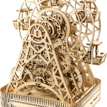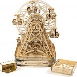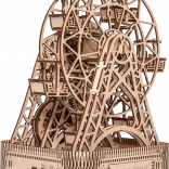 Egy felhúzással a kerék egy percre forog, mind a hat kabinban van hely az utasok számára. A gyönyörűen faragott állvány és mechanikus részek életre keltik George Ferris legendás találmányát. A készlet kiváló minőségű nyírfából készült rétegelt lemezből készül, és nem igényel ragasztót vagy szerszámokat.