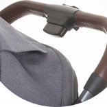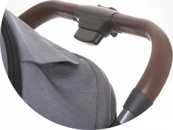 A betekintőnyílással és napellenzővel ellátott kupola minden időben véd. Tartozék a lábzsák, a szúnyogháló és a tágas kosár.