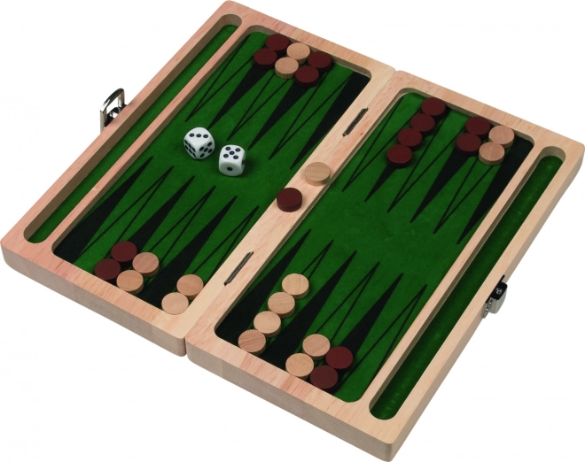 Ez a minőségi GOKI backgammon-készlet a hagyományos kézműves kidolgozást ötvözi a praktikummal. A fa játéktábla kompakt, fém zárral ellátott dobozzá hajtható, így könnyen magával viheti nyaralásra, hétvégére vagy barátokhoz. A zöld filc biztosítja a kövek egyenletes mozgását és a kellemes játékélményt.