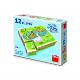 A népszerű DINO Fa képkockák – A farmon játék örömet szerez a gyerekeknek a kirakásban és a szabad építésben egyaránt. A 12 masszív kockából vidám farmállatok és jelenetek állíthatók össze, amelyeket a gyerekek örömmel fedeznek fel. A természetes fa kellemes tapintású, tartós és biztonságos.