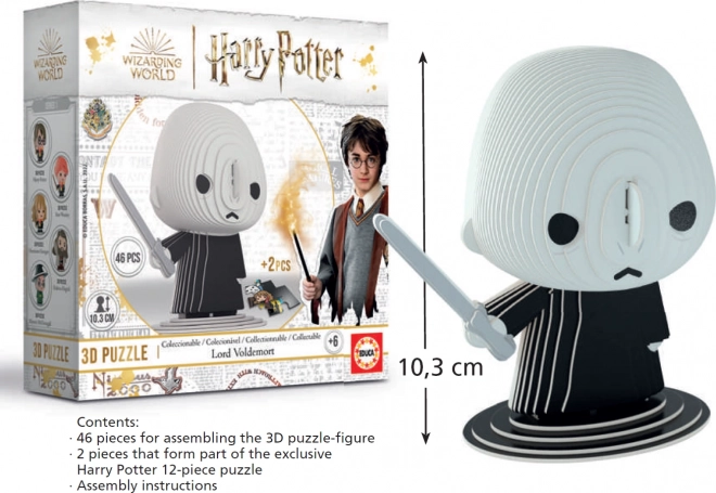 Fedezd fel a HARRY POTTER univerzum 3D puzzle gyűjtői sorozatát, és építsd meg a részletesen kidolgozott Lord Voldemortot. Az előre kilyukasztott kartonrétegeknek köszönhetően az összerakás intuitív, kényelmes, és nem igényel ragasztót. Minden modell teljes színes kivitelű, és összerakás után körülbelül 10 cm magas figurát alkot, amely remekül kiegészíti gyűjteményed.