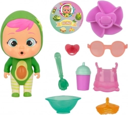 Fedezd fel a cukiság új hullámát a Cry Babies Magic Tears Tutti Frutti illatos babáival. Mindegyik baba gyümölcsös öltözéket visel, édes illata van, és valódi, színes könnyeket tud hullatni – elég megitatni a cumisüvegből, majd finoman megnyomni a hasát. A puha gumitest, a hajlítható karok és lábak ideálisak a gyerekjátékhoz és a gondoskodáshoz.