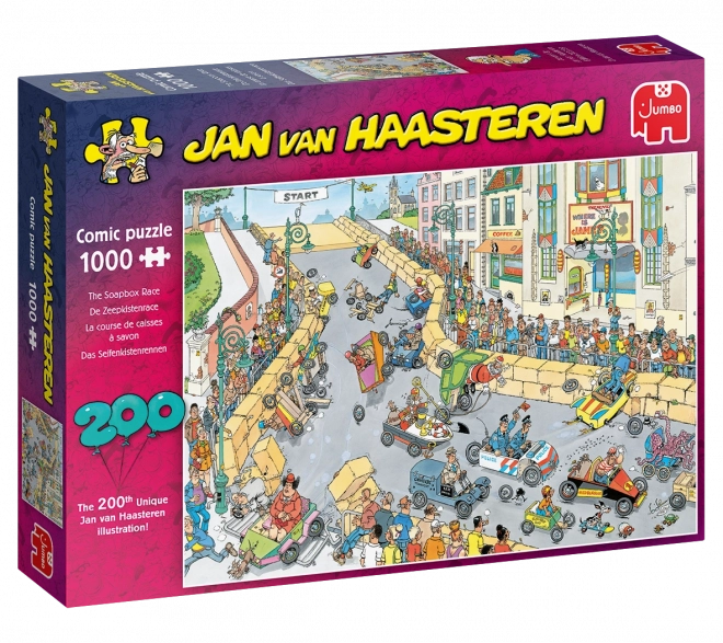 Fedezze fel az őrült jelenetek világát a JUMBO kirakóival a Jan van Haasteren exkluzív sorozatából. A kirakott szappantartóautó-verseny képe rengeteg mulatságos szituációval és apró utalásokkal van tele, amelyeket újra és újra felfedezhet. A szerző jellegzetes stílusa – sok szereplő, vicces pillanatok és ikonikus motívumok – garantálja a remek családi szórakozást.