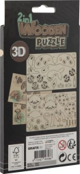 A fa 3D puzzle 2 az 1-ben két vonzó állatfigurát kínál – majmot és delfint. A pontosan kivágott elemeknek köszönhetően a modellek ragasztó nélkül is összeállíthatók, a folyamat intuitív, és áttekinthető képes útmutató segíti. A természetes anyag autentikus megjelenést és kellemes élményt ad az építés során.
